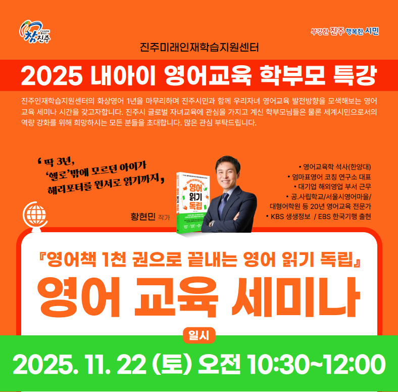 2025년 내 아이 영어교육 학부모 특강 안내드립니다 - "영어책 1천권으로 끝내는 영어 읽기 독립"