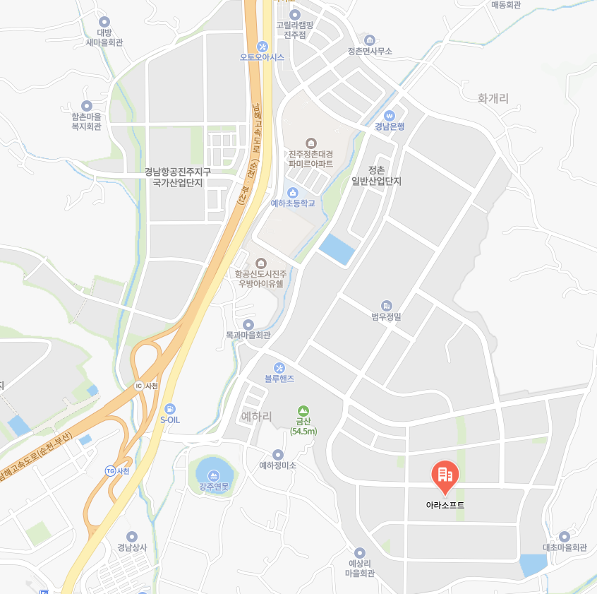 *주소: 경남 진주시 정촌면 뿌리산단로 90(예하리) (네이버 지도 => https://naver.me/x2cY261B )